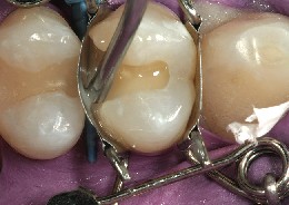 Figure 1 Preoperative occlusal view of tooth No. 5, which had recurrent caries in the lingualproximal area of a 10-year-old composite resin restoration.