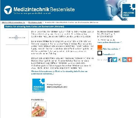 Hersteller Zahn-Matrizensystem in der Liste der Besten verewigt
