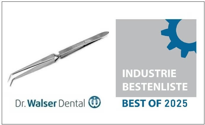 Die patentierte Inlay- und Stiftpinzette der Dr. Walser Dental wurde beim Industriepreis 2025 in der Kategorie Medizintechnik mit dem Titel "Best of 2025" ausgezeichnet. mehr...